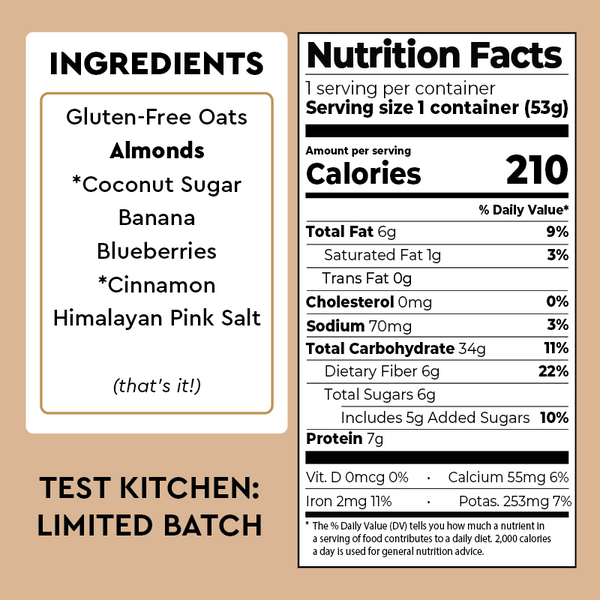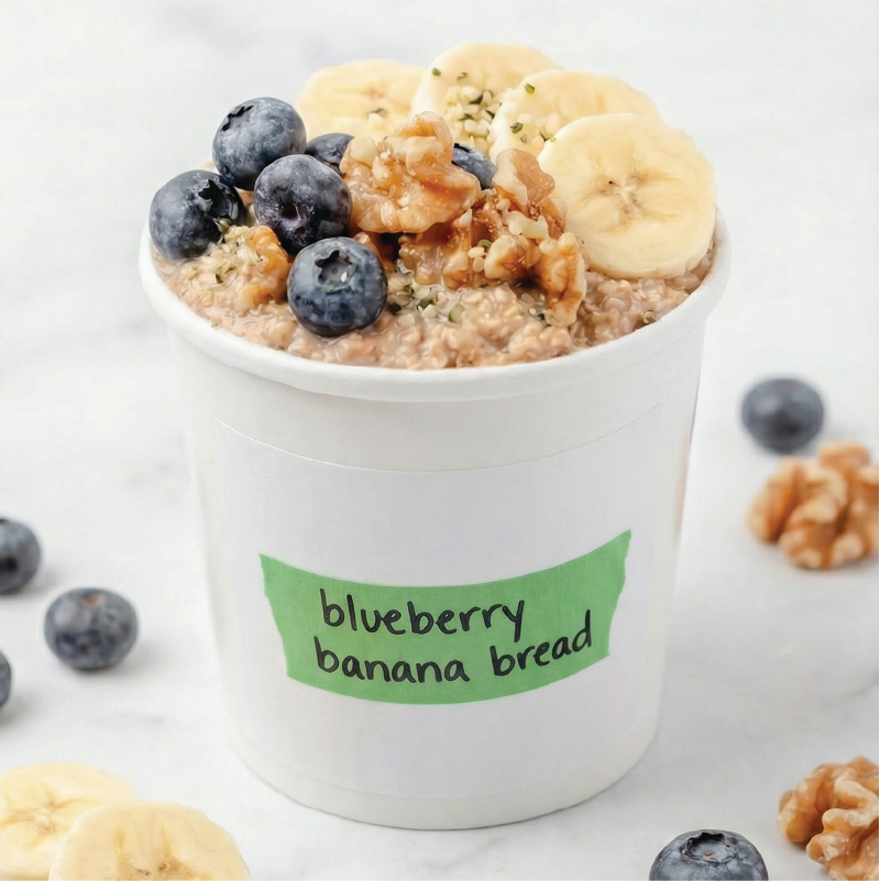 Meet our newest test-kitchen blend: a mashup of two customer favorites—Blueberry Maple and Banana Nut Oatmeal. It's not too sweet and 100% of the flavor comes from real ingredients.